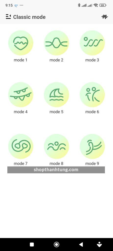 Có tất cả 9 chế độ khác nhau. Bạn có thể từ từ trãi nghiệm từng chế độ cụ thể