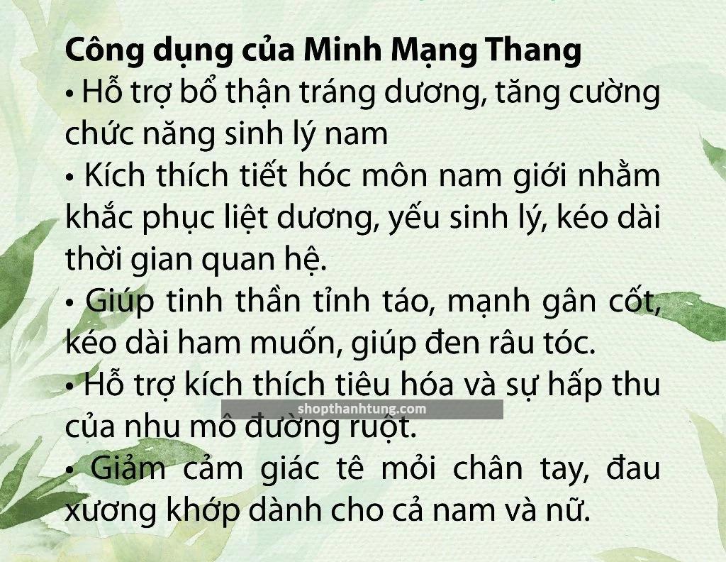 • Hỗ trợ bổ thận tráng dương, tăng cường bản lĩnh phái mạnh