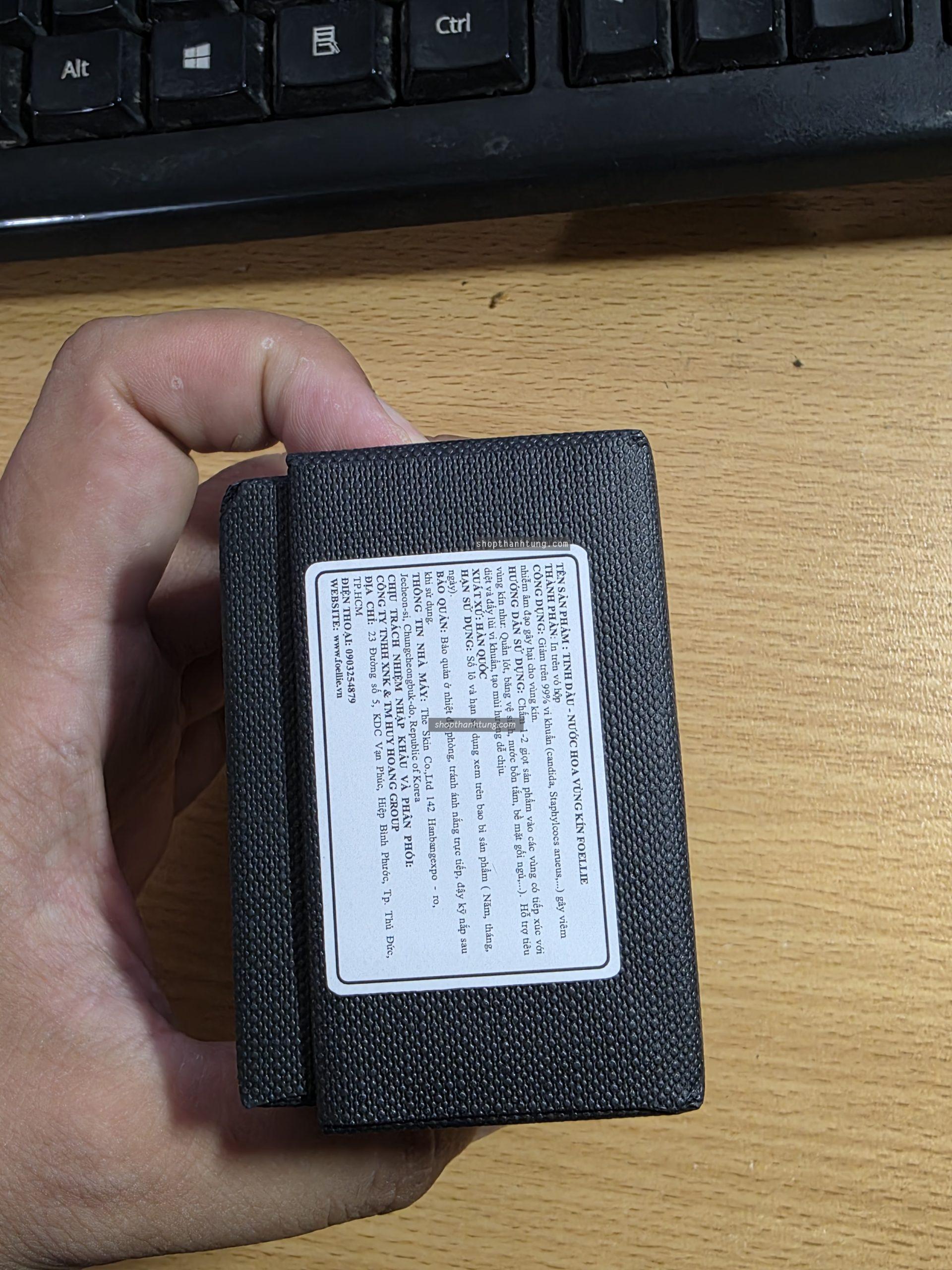 Quả nhiên là đến từ thương hiệu của Hàn Quốc, nước hoa vùng kín Foellie có bao bì và thiết kế cực bắt mắt và sang trọng với phần chai nhựa trong được điều chỉnh màu theo mùi hương của từng loại sản phẩm. Phần nắp chai làm bằng nhựa, in logo của hãng ở phần đỉnh nắp, được thiết kế một cách vô cùng tinh tế. Mỗi chai đều có phần hộp có một tờ giấy giới thiệu các thông tin cần thiết cũng như in các thông tin khác như mã vạch, thành phần, cách sử dụng,… Phần đáy chai được in dập nổi ngày sản xuất.